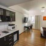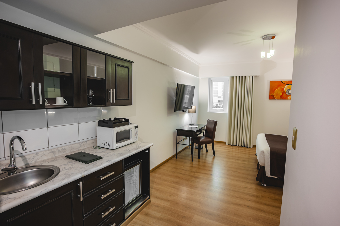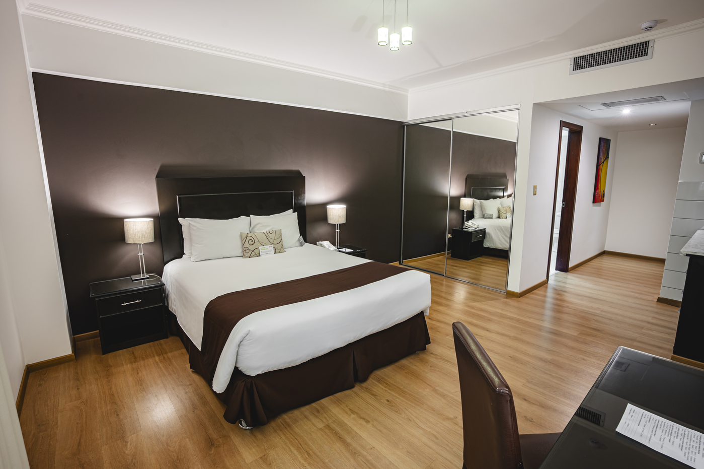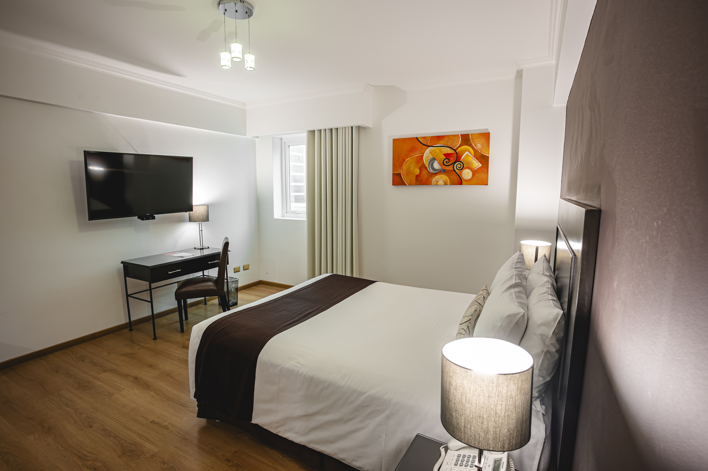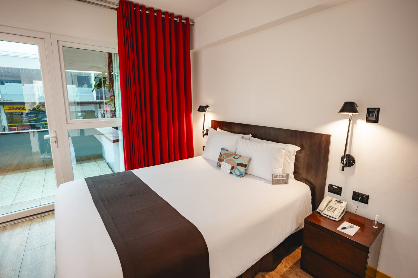 Habitación moderna de aproximadamente 25 m², con vista a la calle o al centro comercial. Ideal para quienes buscan un poco mÔs de espacio y comodidad.