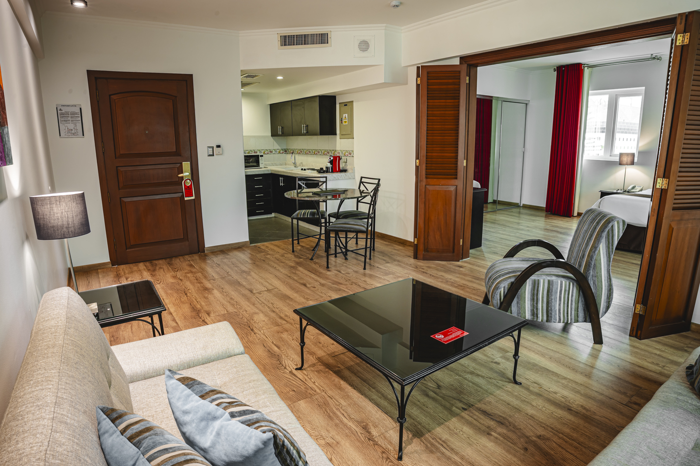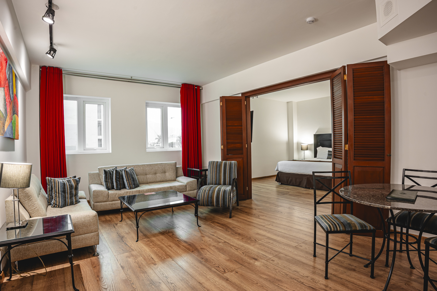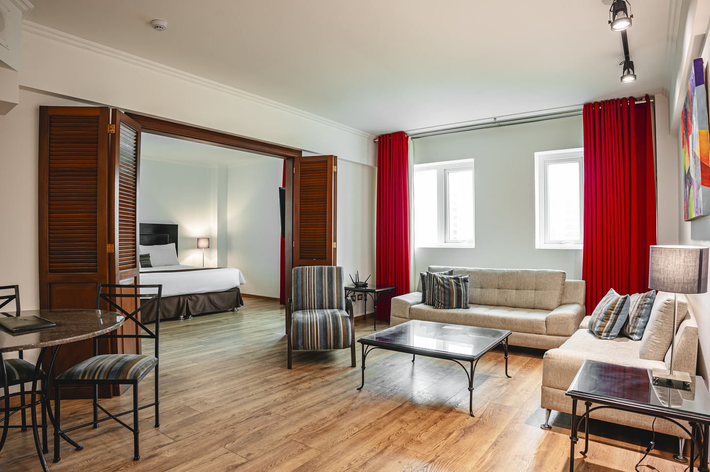 Suite de dos ambientes con unos 40 m². Cuenta con sala/comedor y dormitorio principal. Muy apropiada para estancias mÔs largas o familias pequeñas.